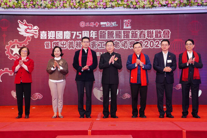 本網訊 2月25日,香港工聯會舉辦喜迎國慶75周年「龍騰飛躍」新春聯歡會暨傑出義務工會工作者頒獎禮。中央政府駐港聯絡辦副主任何靖應邀出席並致辭,並與特區政府民政及青年事務局局長麥美娟、勞工及福利局副局長何啟明等共同主禮。