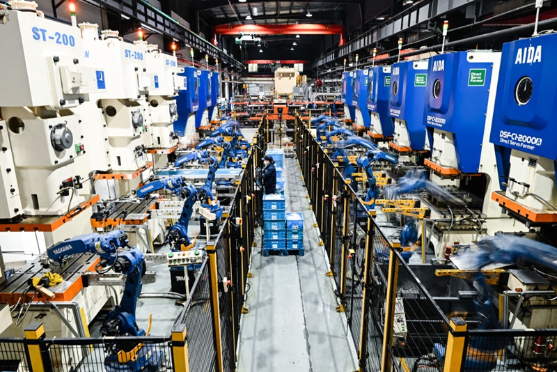 2024年2月28日,在「江蘇省專精特新中小企業」無錫微研精工科技有限公司智能生産車間,機械臂在作業。新華社記者 季春鵬 攝