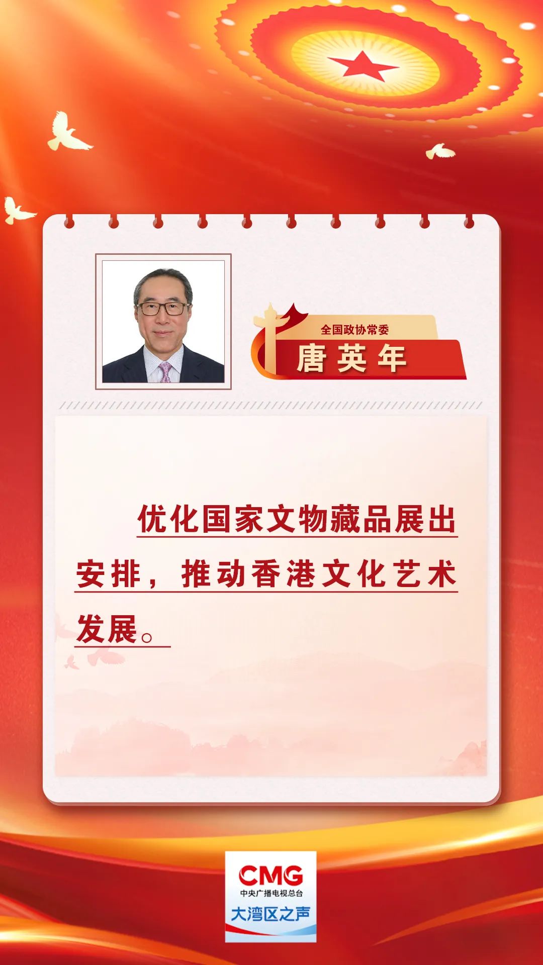全國政協常委唐英年將在今年兩會中提交「優化國家文物藏品展出安排」提案,他希望進一步提升文化藝術成為香港新經濟支柱産業,持續帶動旅遊、餐飲、酒店、零售,乃至整體經濟,達到以文化創意産業為引擎助推香港經濟長足發展的目標。