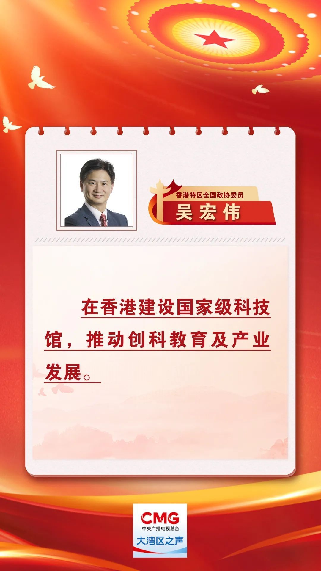香港特區全國政協委員吳宏偉將在今年兩會提交有關在香港建設國家級科技館的提案。他建議香港與北京的中國科技館合作,整合粵港澳大灣區科學館資源優勢,依託香港、輻射灣區,在香港建設一所綜合性、國家級、乃至世界級的科技館,講好中國科技故事,建設新時代的愛國教育基地。