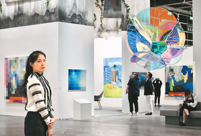觀眾在參觀2024年巴塞爾藝術展香港展會。中新社記者 李志華 攝