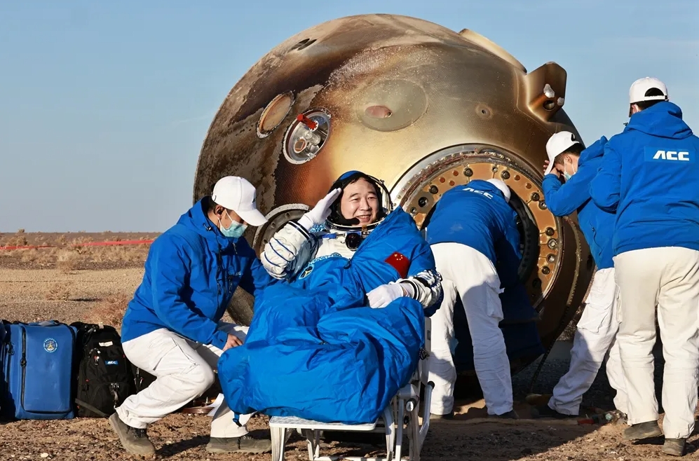 2023年10月31日,神舟十六號載人飛船返回艙在東風着陸場成功着陸,航天員景海鵬安全順利出艙。