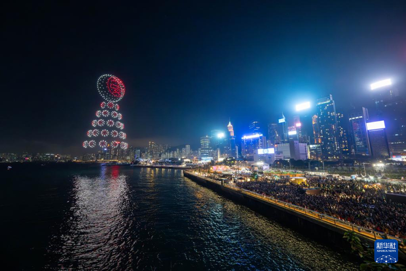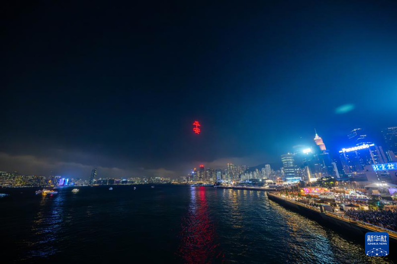 精彩的表演讓觀眾體驗到傳統文化與現代科技的創新融合,引得陣陣讚嘆。「色彩太漂亮了」「圖案好逼真」「畫面很震撼」……當機隊緩緩降落,掌聲歡呼聲響起,灣仔海濱洋溢着歡樂的氣氛。