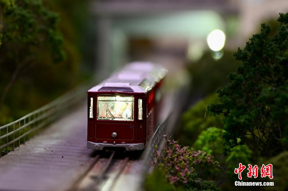 6月20日,香港特區政府中西區民政事務處舉辦「慶祝香港特別行政區成立27周年——細看中西區微型展」,展出22件以中西區為主題的作品,展現精巧工藝和創新科技的微縮模型,將中西區的重要地標和特色標誌呈現給公眾,重塑香港的生活日常和純樸風貌。圖為微縮模型作品《山頂纜車》。