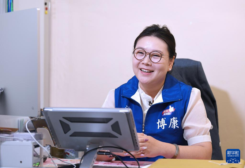 4月18日,博康關愛隊隊長、沙田區區議員郭宣彤接受記者採訪。新華社記者 陳鐸 攝