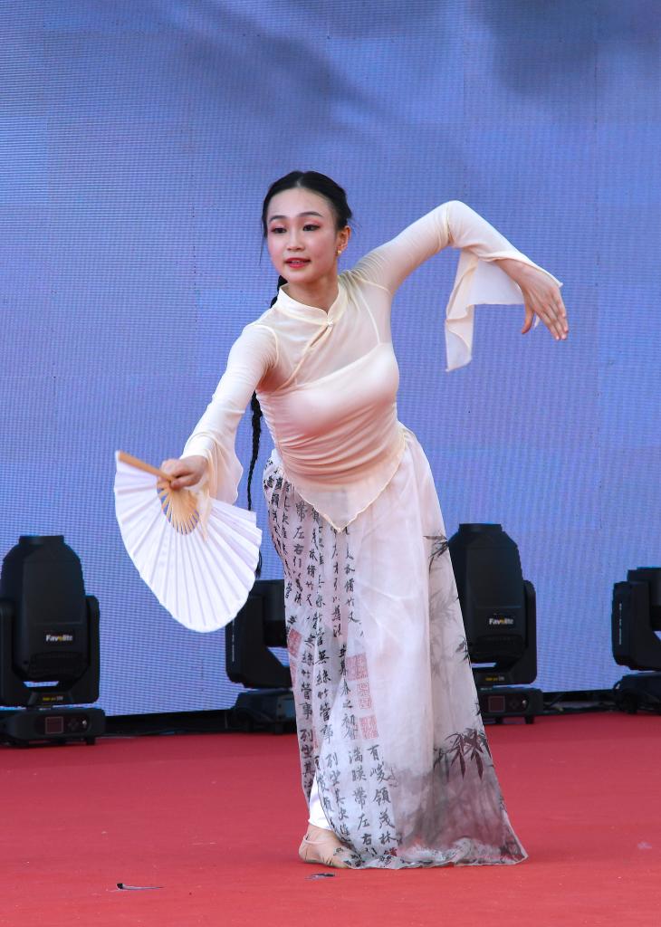 作為演出活動的組織機構,中國港澳同學會旗下香港青年藝術團承擔了本次表演任務。23歲的吳章萌為觀眾獻上國風舞蹈《紙扇書生》。談及選擇這支舞的原因,她認為在扇子的舞動間,能夠體會到古代文人氣質,同時感受他們修身、齊家、治國、平天下理念的內涵。