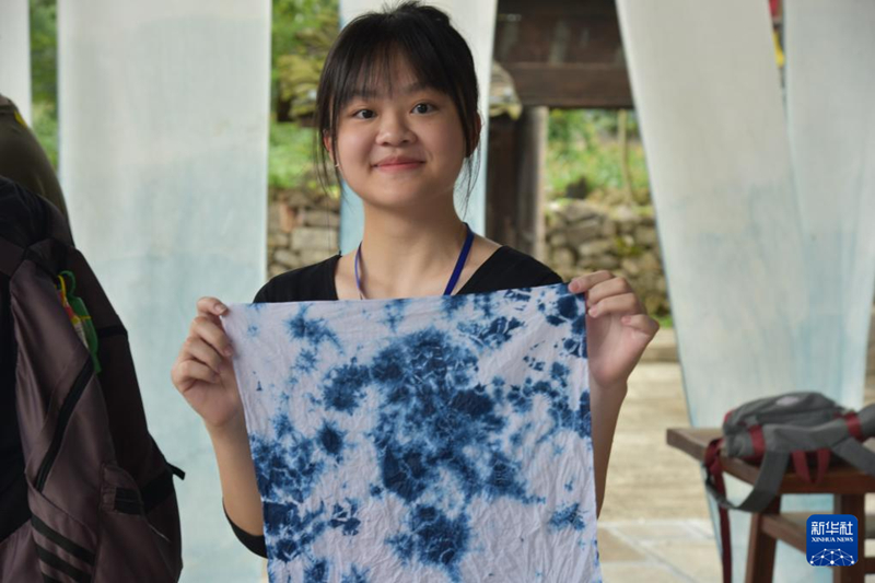 「這些非遺文化歷史悠久,但都比較鮮活,很有生命力,親自動手體驗,猶如跨越時空去觸摸厚重的仡佬族歷史,很有意義。」香港寧波第二中學的黃宇彤激動地向同伴展示親手製作的扎染製品。