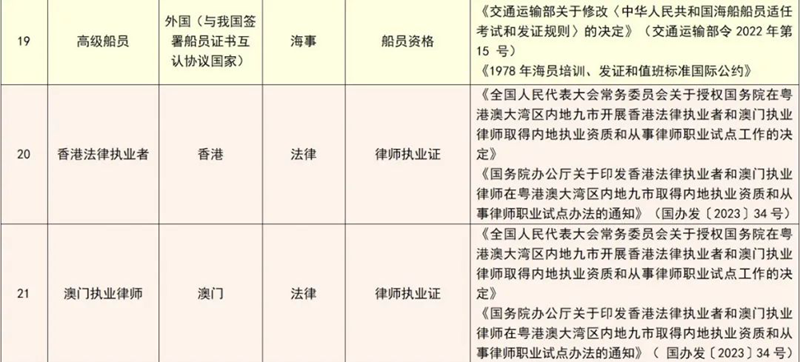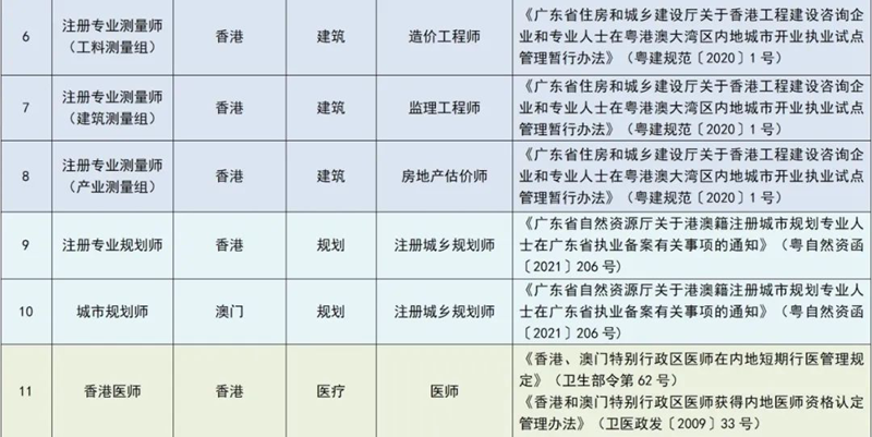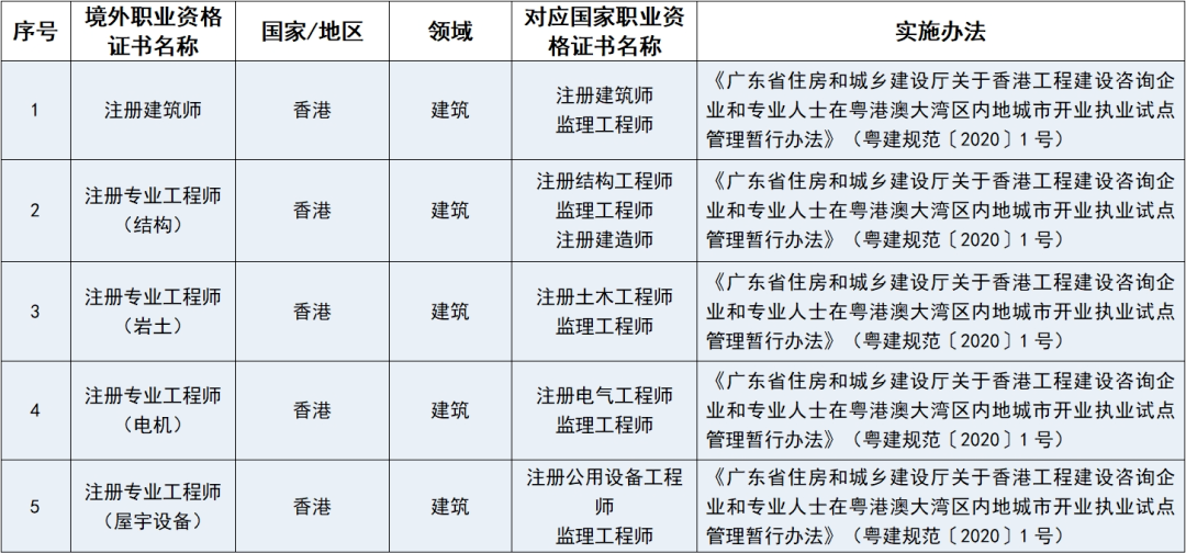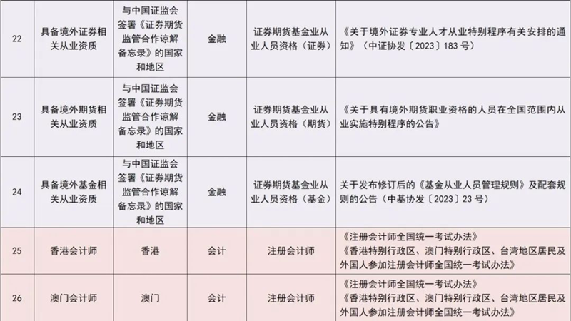 如持有以下境外職業資格證書且證書在有效期內,可按照相關實施辦法在河套深圳園區提供專業服務。