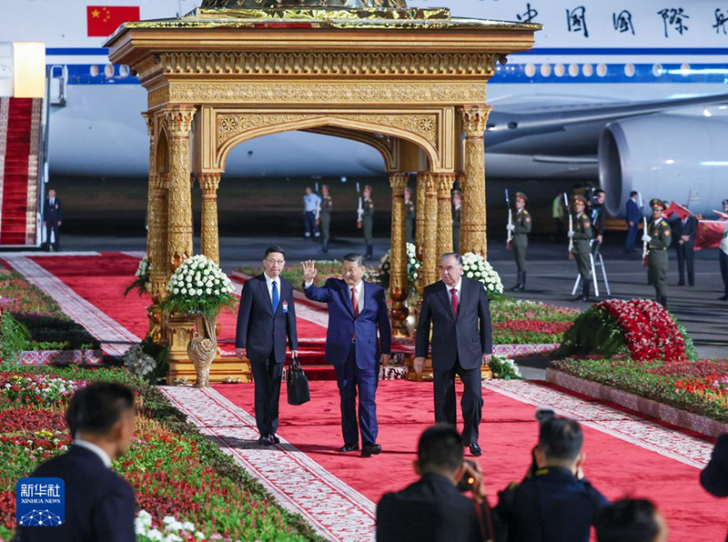 習近平發表機場書面講話,向塔吉克斯坦政府和人民致以誠摯問候和良好祝願。
