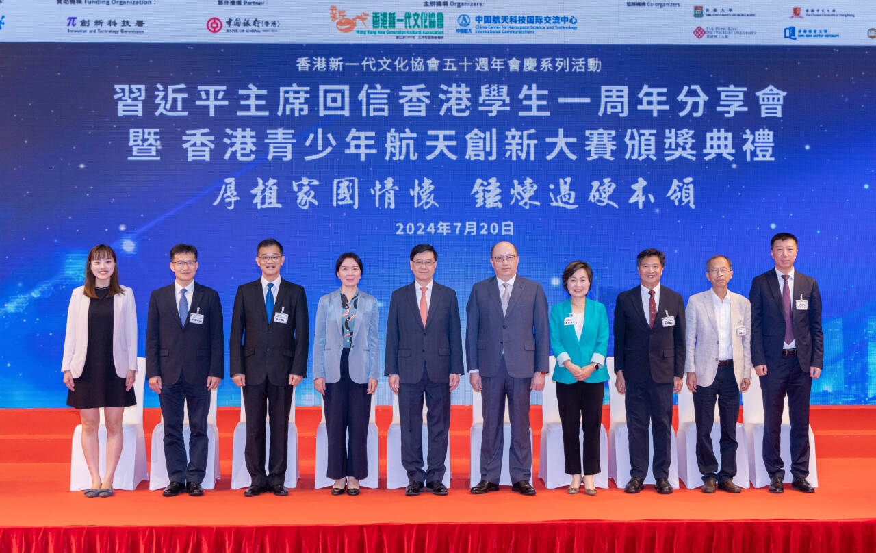 本網訊 7月20日,習近平主席回信香港學生一周年分享會暨香港青少年航天創新大賽頒獎典禮在港舉辦,香港特別行政區行政長官李家超、中央政府駐港聯絡辦主任鄭雁雄出席並致辭。