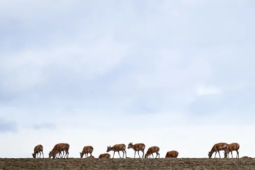 藏羚羊在青海可可西裏五道梁地區遷徙。新華社記者 張龍 攝