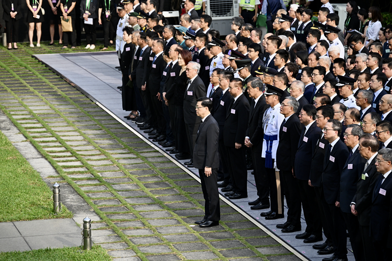 全國政協副主席梁振英、香港特區行政長官李家超、中央政府駐港聯絡辦副主任劉光源、駐港國安公署副署長李江舟、外交部駐港特派員公署特派員崔建春、解放軍駐港部隊副司令員譚志偉,以及特區終審法院首席法官、特區前行政長官、行政會議成員、立法會議員、退伍軍人團體代表、全國人民代表大會香港地區代表、港區全國政協委員代表、鄉議局代表及各制服團體代表等出席紀念儀式。