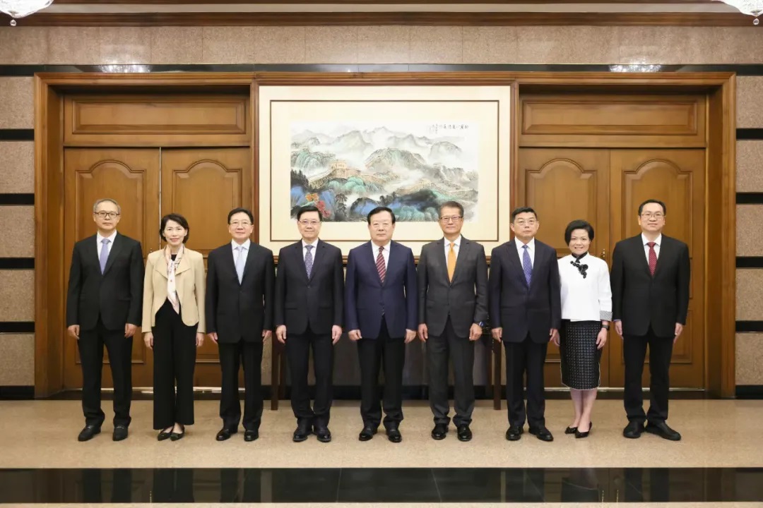 中央港澳工作辦公室、國務院港澳事務辦公室分管日常工作的副主任周霽,香港特區政府財政司司長陳茂波參加會見。