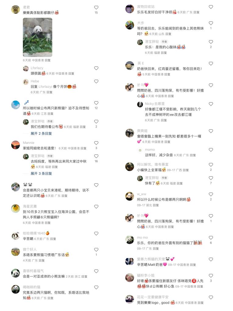 可愛的國寶牽動眾多「熊貓迷」的心,隨着贈港大熊貓消息的更新,網友們熱議的話題從「新熊貓是誰」「新熊貓何時能看到」,變成了「等『奶爸』回去,樂樂能聞到『奶爸』身上其他熊味嗎」「照顧6隻熊貓人手夠嗎」「給新熊貓起什麼新名字」……