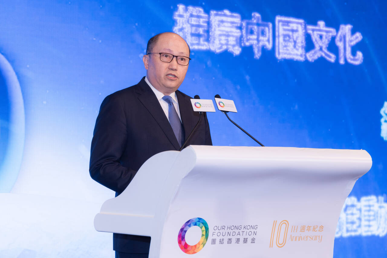 鄭雁雄在致辭中表示,十年來,團結香港基金守正不移、堅定前行,已成為香港智庫界的一面旗幟。當前,香港「一國兩制」實踐進入了由亂到治走向由治及興、破解深層矛盾實現長期繁榮穩定、弘揚創新精神引領香港再創新輝煌的新階段,必須辯證地把握好堅定信心與正視困難、鞏固優勢與防範風險、政府擔當與社會作為、坐而論道與起而行之的重大關係。期待團結香港基金乘改革東風、抓時代機遇、繪發展新篇,在服務國家、建設香港上展現新擔當新作為。在優質建言咨政上展現新擔當新作為。繼續用好優勢資源,把準社會脈搏,匯聚各方智慧,進一步提升研究能力和水平,積極開展有效管用的政策研究,有力支持行政長官和特區政府依法施政,為香港改革創新、由治及興作出更大貢獻。在促進文化交流上展現新擔當新作為。繼續在闡釋「一國兩制」理論、宣介中央政策、促進社會和諧等方面發揮積極作用。匯聚各方力量編好《香港志》,充分發揮好「存史、資政、育人」功能。積極開展對外交流合作,傳播中華文化,講好中國故事。在培養咨政人才上展現新擔當新作為。繼續發揚改革創新精神,形成出思想、出成果、出人才競相涌流的生動局面,在香港新型智庫建設中走在前列、作出表率,全面建設國際頂尖智庫。駐港聯絡辦將全力支持香港智庫堅守正確方向,與時俱進發揮積極作用、不斷發展壯大。