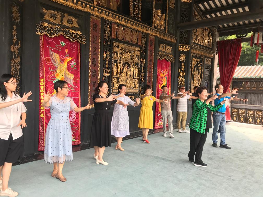 游客在佛山粵劇故鄉游徑中的萬福戲台體驗粵劇。(廣東省文旅廳供圖)
