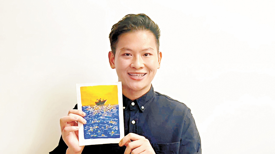 《維護國家安全條例》今年3月23日生效,標誌香港特區完成基本法第23條立法憲制責任。以義工身份參與有關立法宣傳工作的香港青年陳遙表示,自己這次獻給祖國的禮物是一幅畫,畫上有繁星擁護着一艘船,象徵着維護國家安全是每一名香港市民的責任。「我相信國家會在眾多繁星的擁護下愈來愈好,祝願我們的祖國繁榮昌盛!山河永固!」