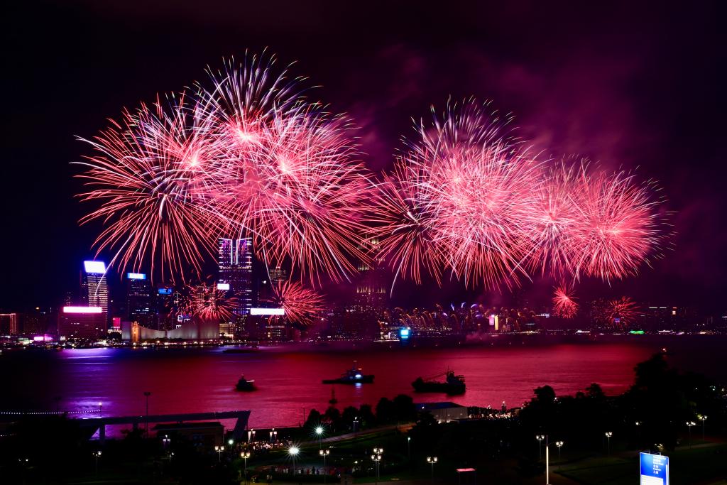 在璀璨煙花的映照下,維港兩岸的大廈交相輝映,火樹銀花與喜悅笑容構成了一道美麗的風景。香港特區政府當晚公布的數據顯示,本次煙花匯演吸引超過33萬人次到場觀看。