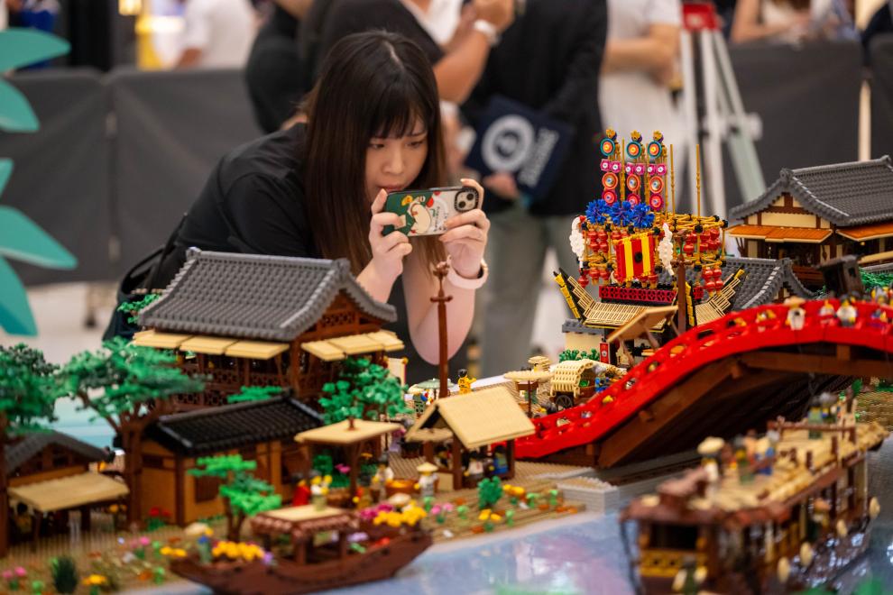 國慶節假期,香港沙田新城市廣場中庭成了許多香港市民打卡地。人們圍着樂高版的《清明上河圖》競相拍照留念。這座用彩色積木鑄就的小小世界,以樂高獨特的顆粒質感細膩地勾勒出北宋都城的繁華盛景,在展現樂高創意與趣味的同時傳承了《清明上河圖》的歷史韻味。