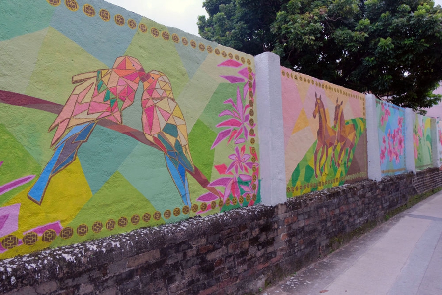 香港元朗錦田鄉因擁有500年歷史的古老村莊而聞名。而今,壁畫讓這裏的古老村莊又平添了幾分藝術氣息。漫步村莊,散落在田間地頭的壁畫引人駐足。這些畫作或吉慶祥和,或淳樸有趣,其間傳遞出的溫情與美好,讓人心頭不由漾起暖意。