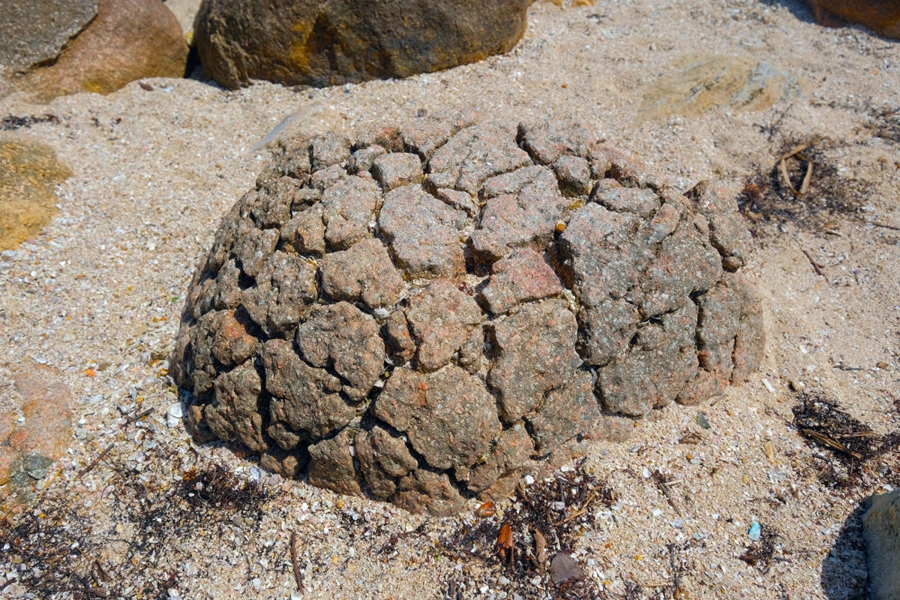 西貢橋咀洲有一個獨特景觀,就是退潮時在島的西端會出現一條連接橋頭島的天然沙石堤。這條位於海中央的狹窄長廊沿岸散落着表面佈滿裂紋、貌似「菠蘿包」的巨石,這是由於風化作用使岩石外層剝落,讓岩石呈現出「菠蘿包」的外觀。