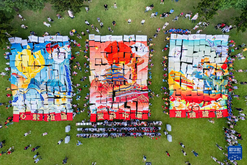 10月1日,在香港中山紀念公園,180余所學校的約千名師生家長共同拼出3幅巨型拼圖:愛我中華、富強盛世、心繫祖國。新華社發(受訪者供圖)