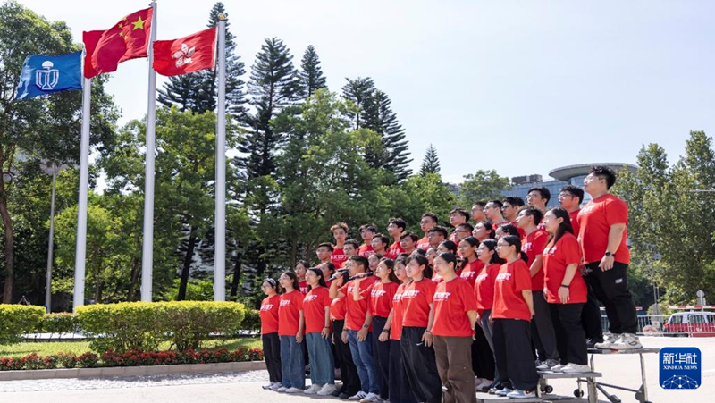 「中國紅」閃耀在全港青少年的心中。舉行國慶升旗儀式,近年來已成為香港眾多大中小學的慣例。在香港科技大學,400 餘名師生在儀式後齊聲高唱《我和我的祖國》,2萬多人在線觀看並點讚。