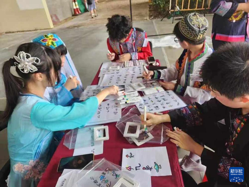 9月28日,在香港觀塘海濱公園,身穿民族服飾的青少年體驗非遺文化。新華社發(受訪者供圖)