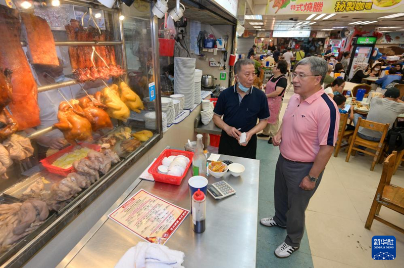 10月1日,香港約3600家食肆推出折扣。圖為灣仔鵝頸街市一家推出外賣優惠的燒味店。新華社發(香港特區政府供圖)