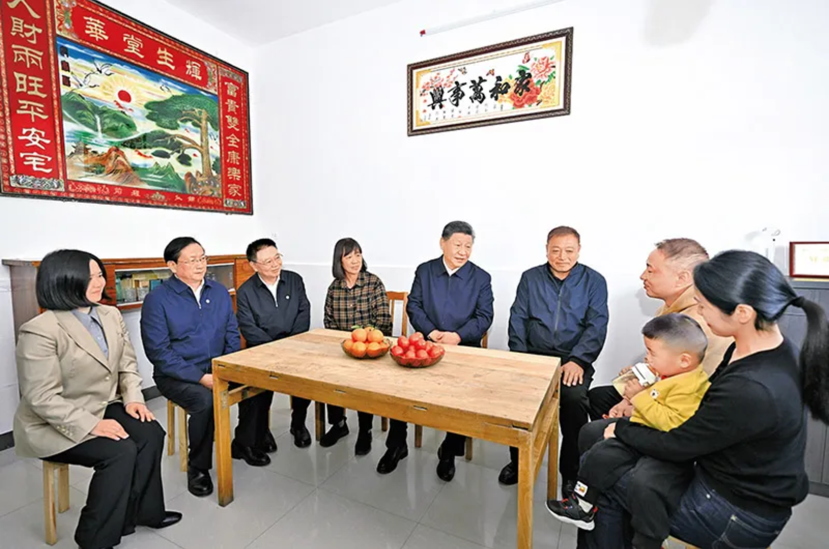 2024年11月4日至6日,中共中央總書記、國家主席、中央軍委主席習近平在湖北考察。這是5日上午,習近平在咸寧市嘉魚縣潘家灣鎮四邑村村民熊成龍家,同一家人圍坐在一起拉家常。 新華社記者 燕雁/攝