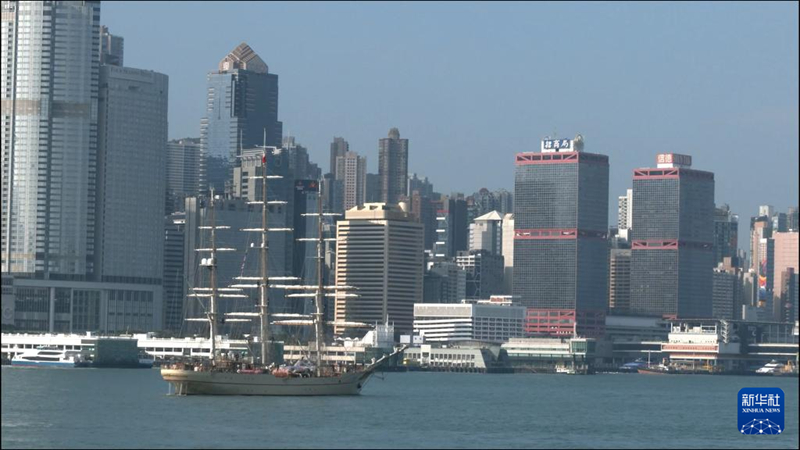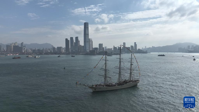 11月18日,中國海軍首艘風帆訓練艦「破浪」號抵達香港。新華社發(江碩 攝)