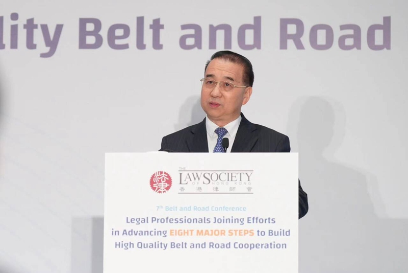 劉光源表示,「一帶一路」走的是攜手並進的陽光大道、開放合作的希望之道、文明互鑒的人間正道。黨的二十屆三中全會擘畫了以進一步全面深化改革開闢中國式現代化的宏偉藍圖,展示了進一步擴大高水平對外開放,為世界發展提供新機遇的堅定決心。香港作為共建「一帶一路」重要功能平台和節點,始終站在中國對外開放的最前沿。劉光源分享了三個觀點。一是築牢國家安全底線,夯實貢獻「一帶一路」的法治根基。《維護國家安全條例》的制定實施,標誌着香港進一步夯實法治根基,香港營商環境更安全、更自由、更開放、更可預期。事實證明,香港只有「安下來」「穩下來」,由治及興才有保障,助力共建「一帶一路」才有底氣。二是發揮普通法獨特優勢,展現助力「一帶一路」的香港所長。 香港高度對接國際經貿通行規則,可以助力「一帶一路」加速「法聯通」;爭議解決體系完備,可以打造「一帶一路」糾紛化解的「優選地」;「全球百大律所」半數以上在香港設有辦事處,可以成為「一帶一路」法律服務的「人才庫」。三是提供優質法治公共産品,擴大「一帶一路」「朋友圈」。近年來,國家出台多項重要發展戰略,支持香港建設亞太區國際法律及解決爭議服務中心,對外擴大法治合作、推廣法律服務。駐港聯絡辦將一如既往,全力支持香港法律界參與共建「一帶一路」,融入國家發展大局,用自身所長貢獻國家所需。
