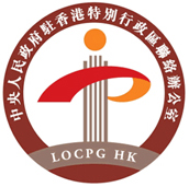 以紅黃兩色飄帶與中聯辦大樓的造型形成一個「中」字,代表中聯辦;大樓的五條豎線代表中央賦予中聯辦的五項職能;兩色飄帶既代表祖國內地與香港實行「一國兩制」,又體現融合、交流等內涵,既有區別又密不可分;大樓底座的拱形橋梁代表中聯辦所起的溝通橋梁作用。外部圓圈體現了莊嚴和團結。LOCPG為中聯辦英文名稱Liaison Office of the Central People's Government的縮寫。