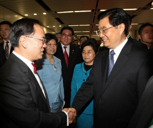 7月1日,中共中央總書記、國家主席、中央軍委主席胡錦濤圓滿結束在香港的各項活動,