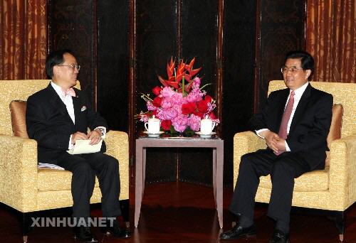 新華網香港6月29日電(記者孫承斌 陳斌華) 國家主席胡錦濤29日下午在下榻的飯店會見了香港特別行政區行政長官曾蔭權。