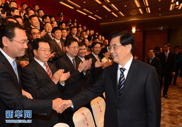 中共中央總書記、國家主席、中央軍委主席胡錦濤30日下午在香港會展中心親切會見中央駐港機構和主要中資機構負責人,並發表重要講話。